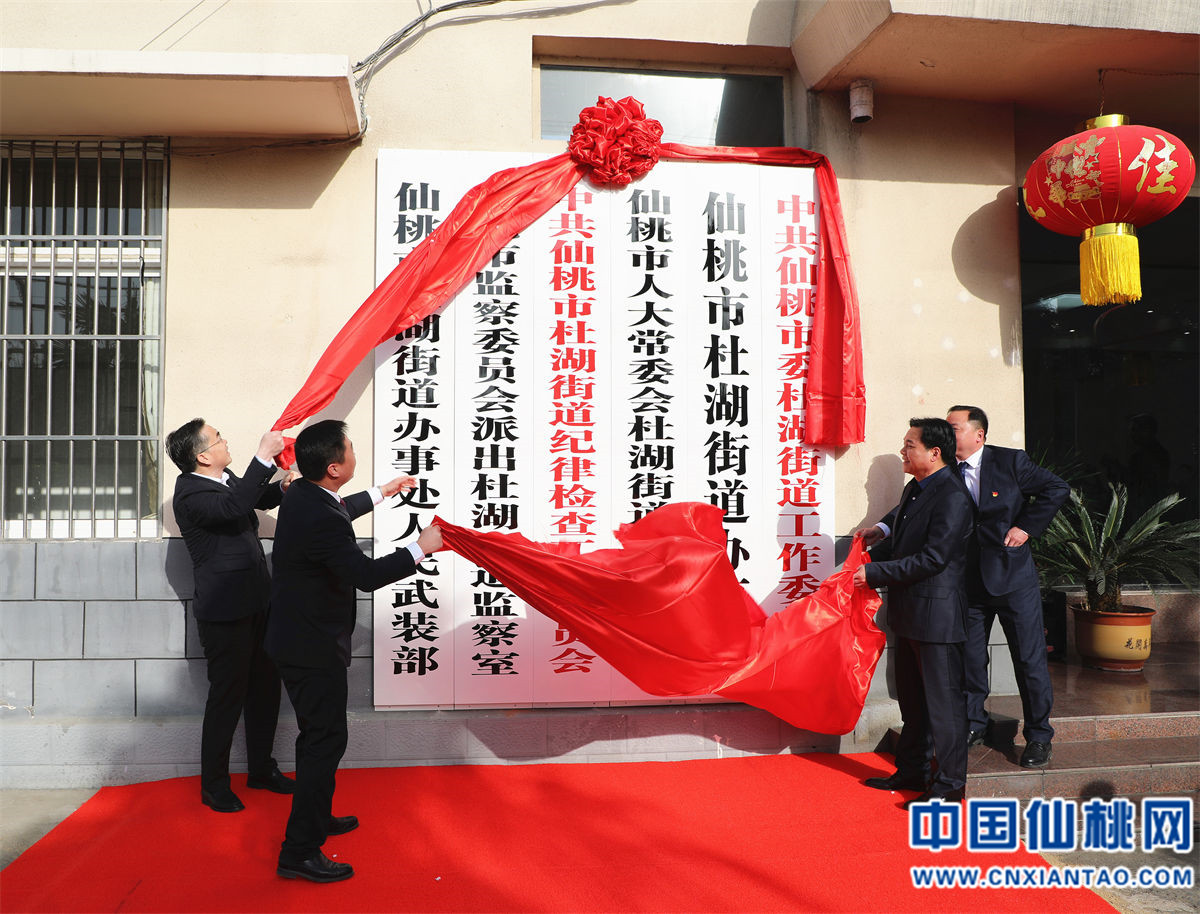 3月8日上午,杜湖街道宣布正式成立。市委书记罗联峰,市长孙道军为杜湖街道揭牌。