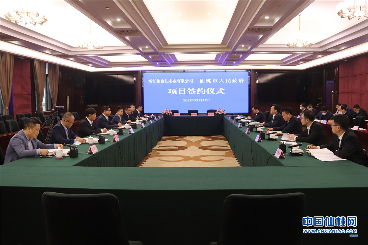 市委书记罗联峰出席项目签约仪式并致辞。浙江施俞儿实业有限公司董事长施军和市委常委、副市长胡常伟代表双方签约。