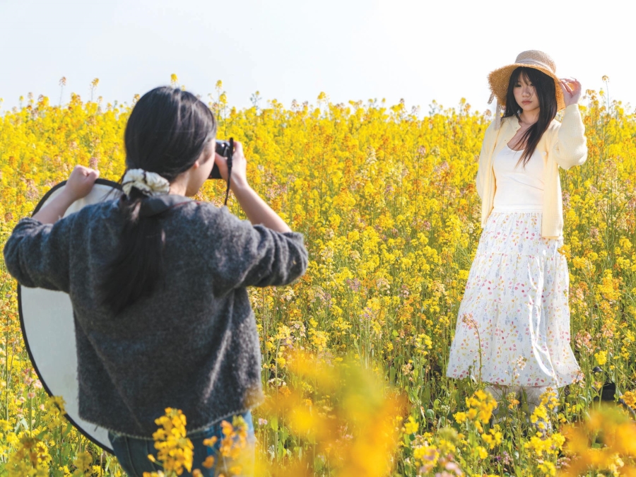 油菜花田迎客来