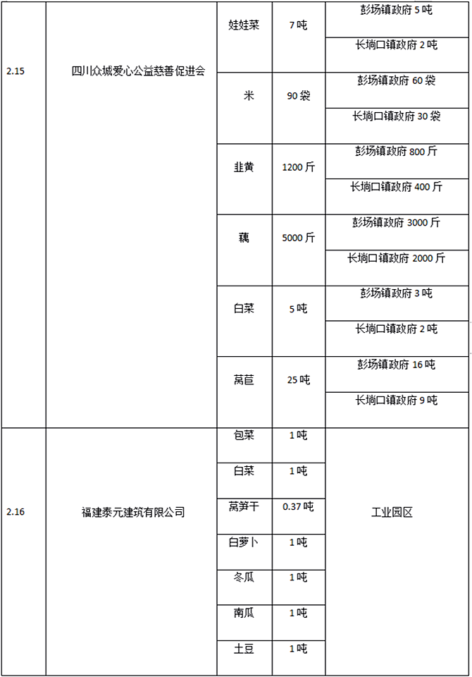 备注:镇办领取的捐赠物资只能用于一线防疫人员、困难群众、疫情隔离点、封闭小区居民、防疫物资生产企业。