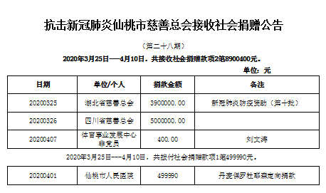 抗击新冠肺炎仙桃市慈善总会接收社会捐赠公告(第二十八期)
