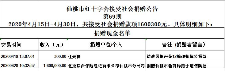 仙桃市红十字会接受社会捐赠公告(第69期)