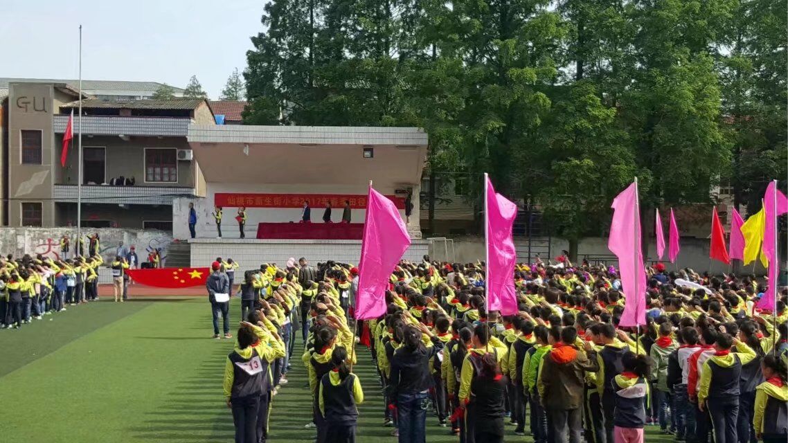 4月27日,新生街小学举行一年一度的春季田径运动会。上午8:30开幕式准时举行,随着运动员进行曲的响起,各班运动员代表队方阵在响亮口号声中,踏着整齐的步伐经过主席台,接受检阅。