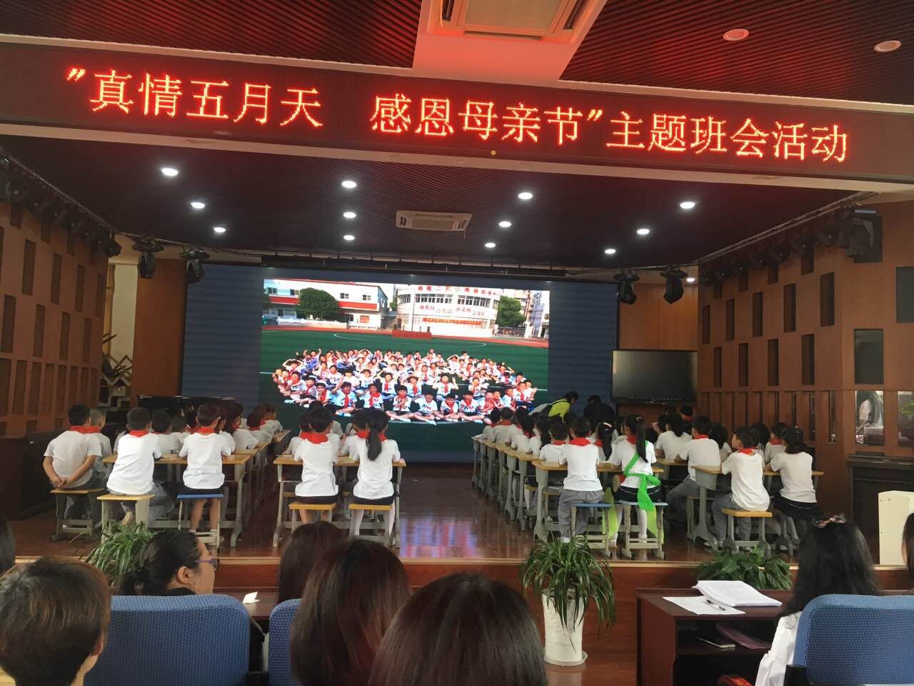 此次活动由三(5)班承办,邀请了全体班主任和60多名家长代表参加。班会活动以“妈妈,我爱你”为主线,分别从“了解母亲”、“赞美母亲”、“心有灵犀”“、“真情告白”等四个环节传递了孩子们对妈妈的心声。班会上,孩子们各抒己怀,有讲述历史上伟大母亲的故事的,有回忆自己与母亲幸福时光的,有以诗歌颂咏伟大母亲的,也有亲手将自制的精美礼品献给妈妈的……