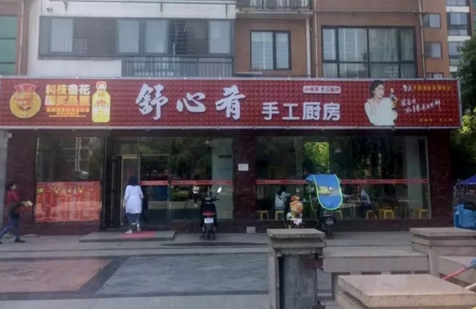 金域城邦位于仙桃大道西端,而“舒心肴”餐馆则在3号楼一层,于2015年3月份正式营业。