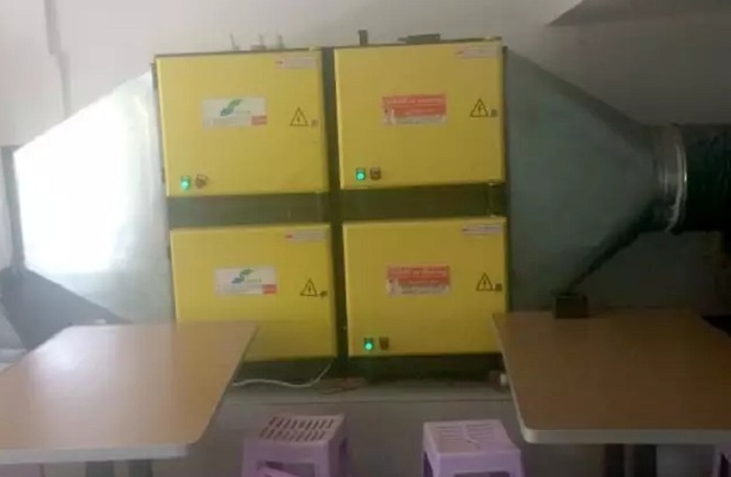 在他的带领下,记者在该餐馆二楼看到了并排放着的两台油烟处理器。他告诉记者,每台油烟处理器价格为两万多元,首先会进行油水分离,油会滞留在机器中,排放出去的大多数是水蒸气,产生的危害很小了。