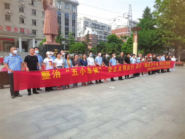 5月30日,沙嘴街道办事处开展“五小车辆”综合整治宣传走进社区活动。在整治“五小车辆”,安全文明出行,助力“挺进五十强,创成文明城”的大红色横幅上,参会人员踊跃签下自己的名字,纷纷表示要做文明交通的践行者、维护者、传播者和推动者。(摄影 通讯员 周杏荣 王淑敏)