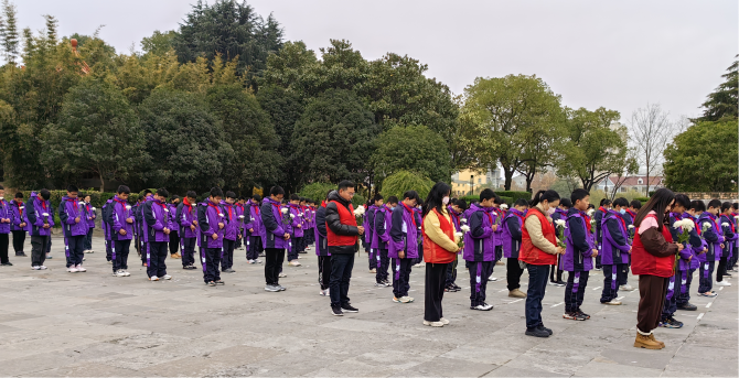 12月13日上午,市教育局工作专班和第四中学部分党员教师组织学生在仙桃市革命烈士纪念碑前举行12.13国家公祭日活动。