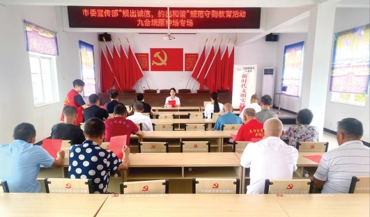 为加强文明乡风建设,更好地规范辖区居民言行举止、破除陈规陋习、树立文明新风,营造文明和谐的人居环境,8月28日,九合垸原种场开展了“规出诚信,约出和谐”规范守则教育活动。
