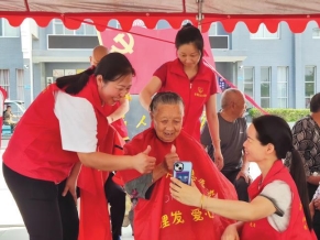 “咔嚓、咔嚓、咔嚓……”在刘口社区新时代文明实践站,63岁“时间银行”志愿者程前关娴熟地“舞动”着手中的剪刀,经过精心修剪,社区老人的头发变得干净整齐。