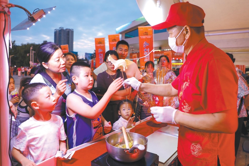 图为观赛市民选购非遗糖塑。摄影记者刘贤双