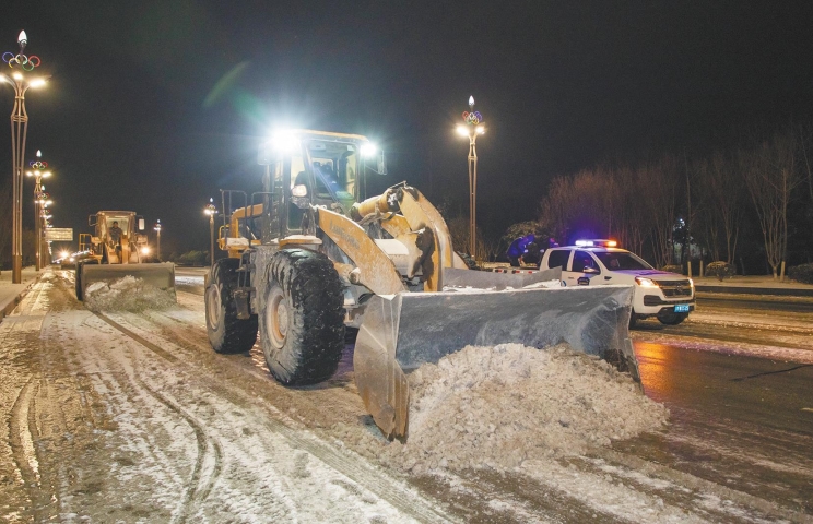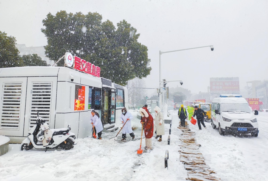 该镇党员干部主动亮身份、作表率,带头冲锋在清雪除冰第一线,带动志愿者和群众自发参与。大家聚焦公路沿线、主次干道、急弯陡坡、党群服务中心等关键点位及易结冰路段,对积雪进行大扫除、大清理,做到“随降随扫、即扫即清”。(记者 张曼)