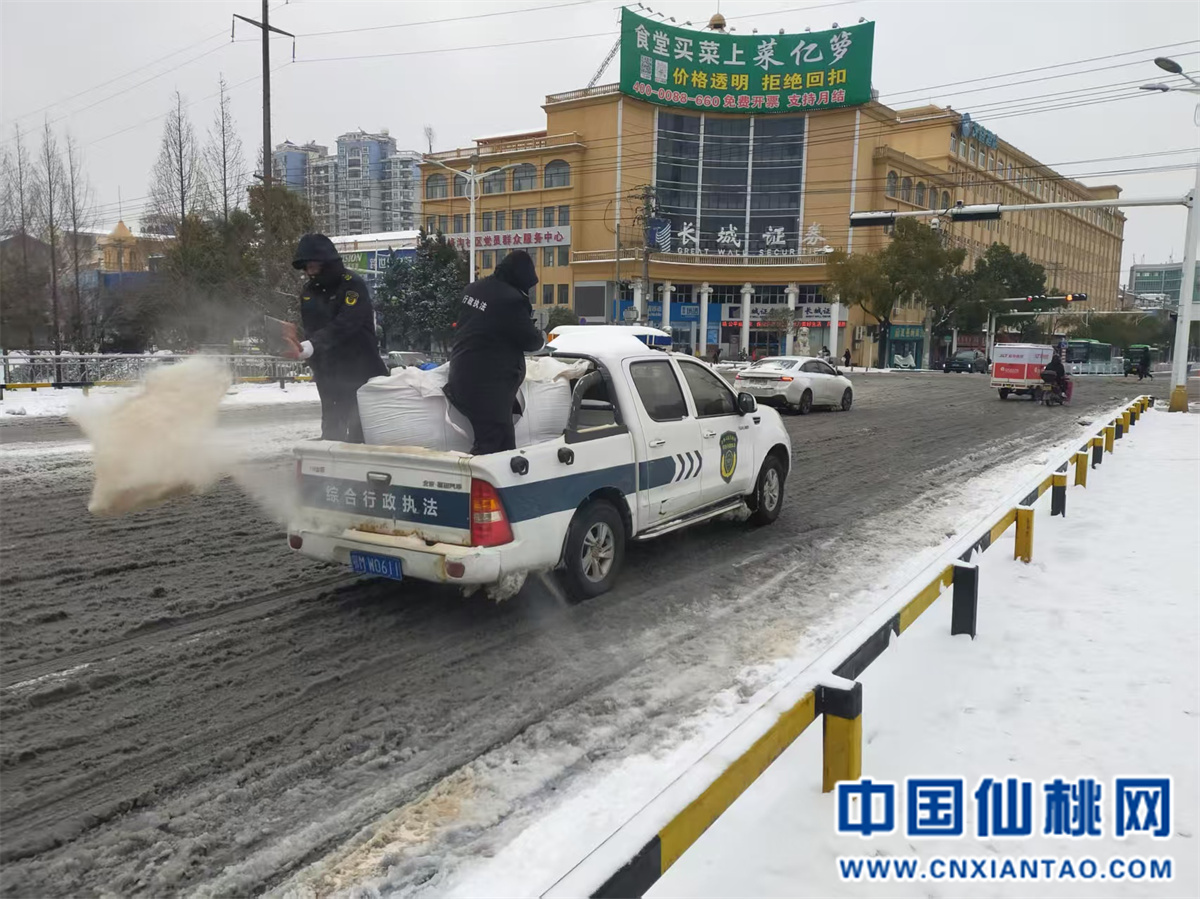 街道党工委主要领导率先垂范,带领全体机关干部手持铁锹、扫帚,对机关门口人行通道及沔阳大道等主要路段积雪积冰进行集中清理,在白雪覆盖的路面上开辟出一条条“放心通道”。与此同时,针对桥梁、坡道、闸口等重点部位,街道综合执法中心启动应急预案,组织力量对钱沟桥、何李桥、仙西桥、叶王路桥、流潭闸及钱沟上坡、建设街南7巷口、八中周边等关键节点持续进行撒盐除冰与巡查值守,设立警示标识,全力保障交通要道安全。