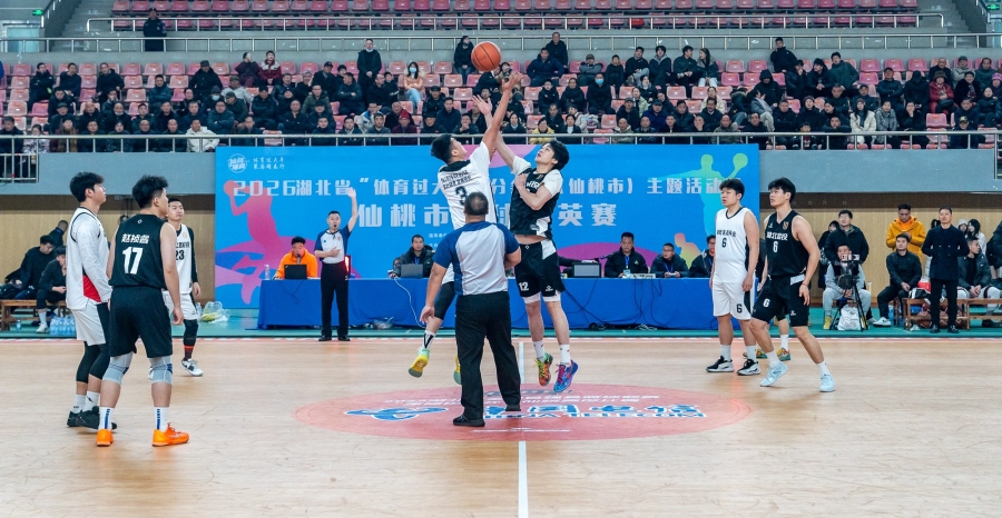 图为2026年湖北省“体育过大年”分会场主题活动暨仙桃市篮球精英交流赛比赛现场。