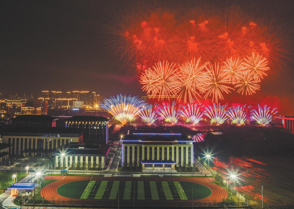 第二篇章烟花如林,红、绿、黄三色焰火交错升空。人群里,新落户的机械制造企业负责人彭泽东和家人举着手机记录焰火璀璨绽放。几年前,一直在东北的他到仙桃投资考察,被仙桃完备的制造产业链吸引,正式开办分厂。“这里城市有活力,营商环境好,企业更有信心。”彭泽东说。