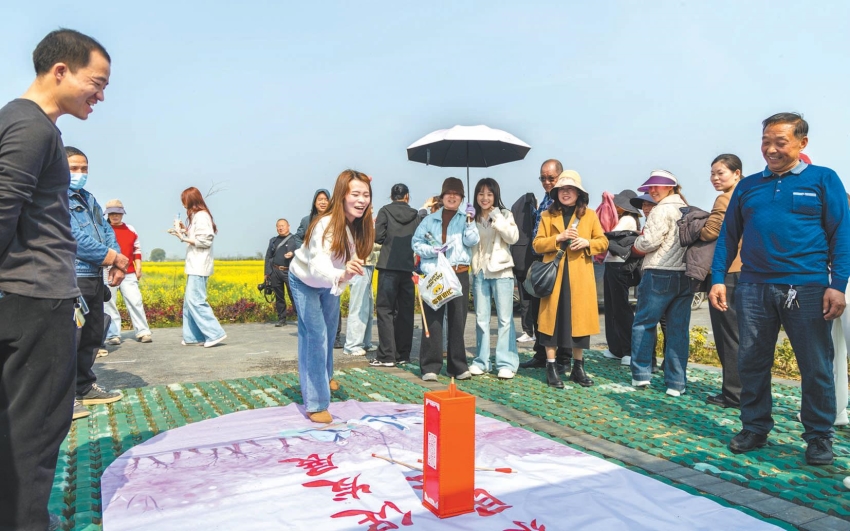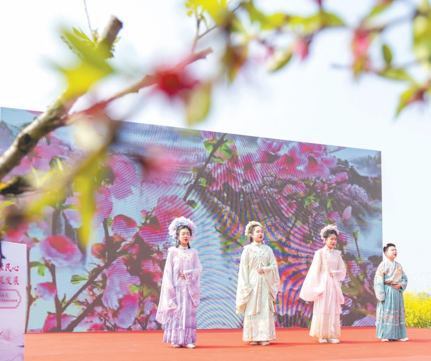 文明新风与桃花美景相伴,本次活动以“文明实践聚民心 桃酒产业促发展”为主题,创新将新时代文明实践、农旅融合连接,赋能乡村振兴。“今年的节目很丰富,每年桃花季活动我都来赴约。”演出结束后,本地村民胡爱群意犹未尽,她走进人气满满的“文明集市”,在健康义诊摊位排队等候,尽享家门口的医疗服务。