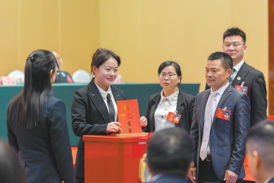 毛嘴代表团代表认真讨论。摄影记者邓娟 市政协十届五次会议闭幕会上进行了选举。 摄影 记者 晴霄 郑恒