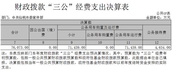市委宣传部2018年“三公经费”支出7.61万元,其中:因公出国(境)费0元;公务用车购置及运行维护费7.14万元(其中运行维护费7.14万元),占“三公经费”的93.82%;公务接待费0.46万元,占“三公经费”的6%。具体情况如下: