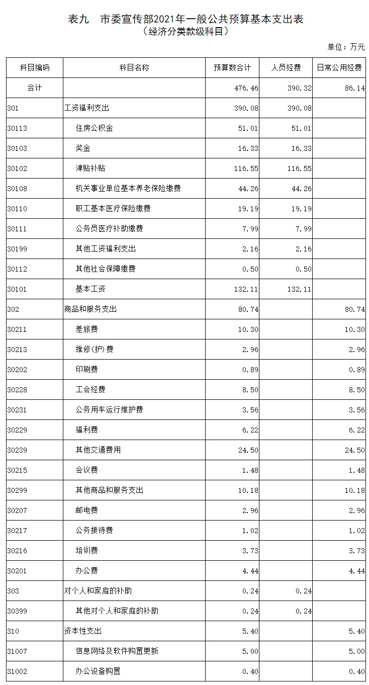 表六 市委宣传部2021年一般公共预算基本支出表 |