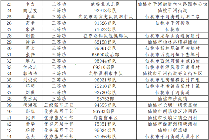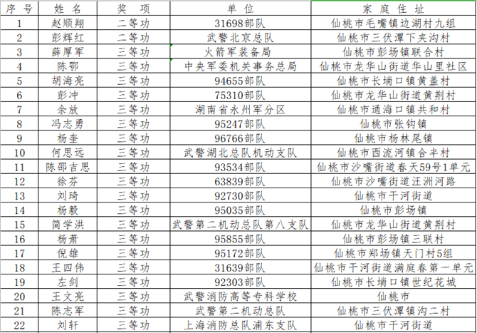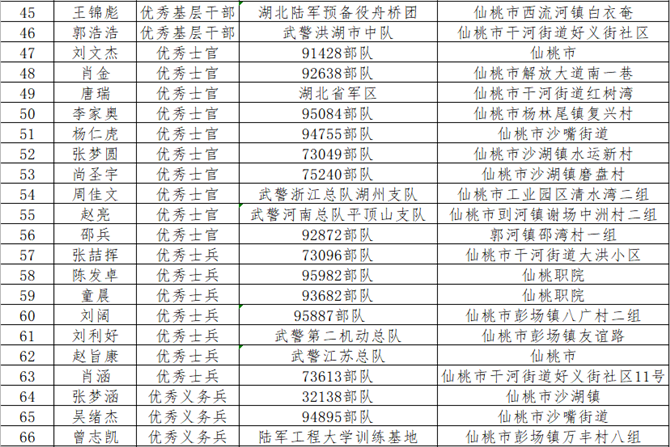 为了宣扬“军营仙桃好男儿”的强军故事,树立崇尚先进、学习先进、争当先进的鲜明导向,努力营造“参军光荣、当兵有为”的浓厚氛围,切实推动军人成为全社会尊崇的职业,进一步激发仙桃优秀青年献身国防的热情,特设立光荣榜予以公布。