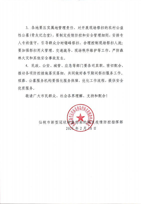 当前疫情防控形势依然严峻复杂,为营造我市温馨安全、文明低碳的祭扫氛围,确保广大市民过一个健康安乐祥和的春节,现将我市2021年春节期间祭扫服务有关事项通告如下: