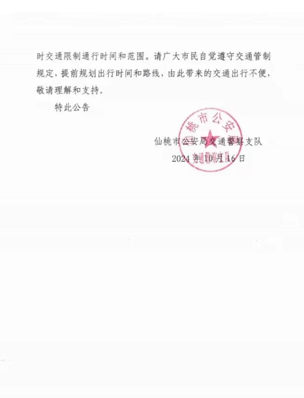 关于加强仙桃市第十届运动会群众体育类10公里跑比赛活动部分道路交通管理的公告