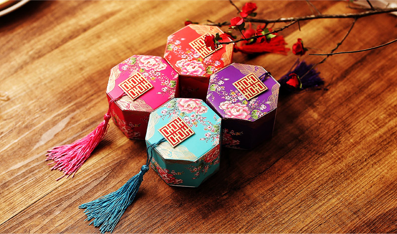 2、喜燕家居旗舰店:中式八角古风喜糖盒,不同颜色却展现出同样的惊艳效果。