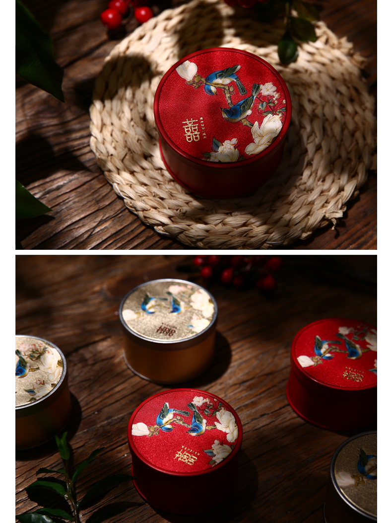 3、家有喜事喜品馆:马口铁中式喜糖盒,喜鹊上枝头非常漂亮且超有寓意。