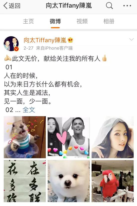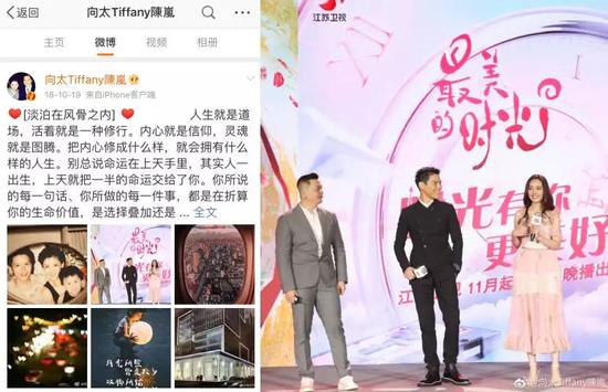 两人还没确认关系时,向太发的微博配图,除了自己一家三口的照片,就是郭碧婷向佐的同框照。