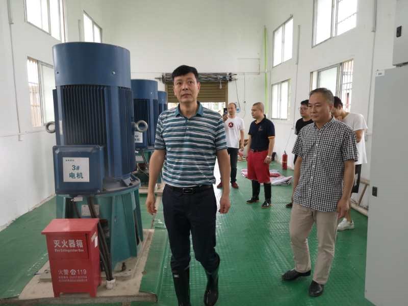 蔡涛同志在民五泵站、金鱼泵站、菜湖泵站、河口泵站、木头湖泵站,现场察看泵站设施设备、询问泵站运行情况、详细了解泵站功率及排放流量。同时,对防汛人员进行了亲切的慰问。
