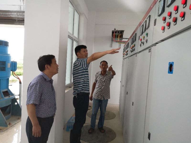 7月12日,市教育局党组书记、局长蔡涛深入胡场镇防汛一线,检查教育系统党员干部泵站值守工作。