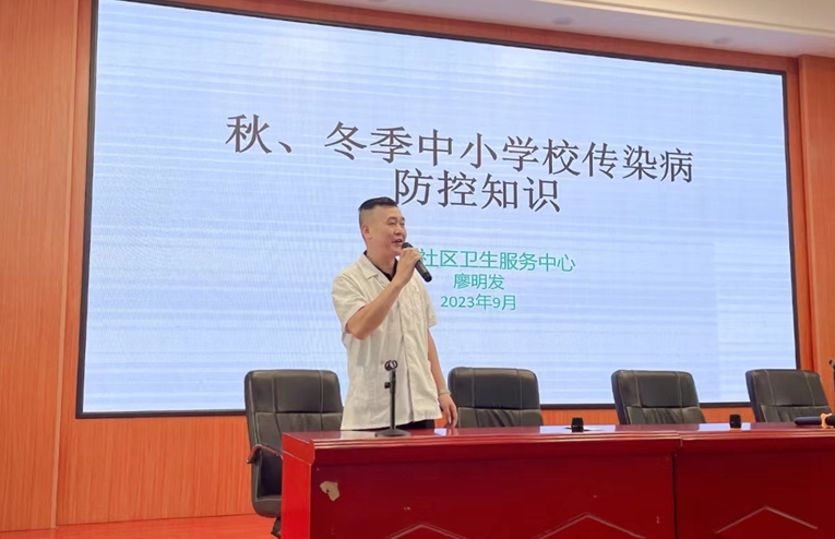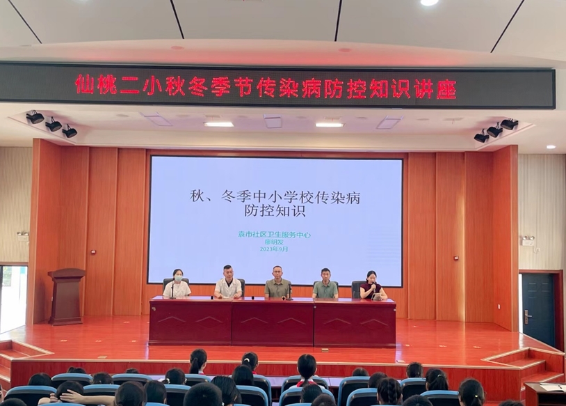 秋冬季是传染病的高发季节,为了加强学校传染病预防工作,增强全体师生对秋冬季节传染病的防控意识,强化传染病预防的相关措施,2023年9月15日,仙桃二小特邀袁市社区卫生服务中心李又斌院长、廖明发主任、黎煜科长一行,对师生进行了秋冬季节常见传染病防控知识讲座。