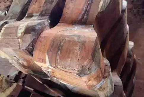 常言"十檀几空",大红酸枝虽然没有到那么多空心的比例,但是空心的也不少。下图是市场常见的大红酸枝原木"统货":