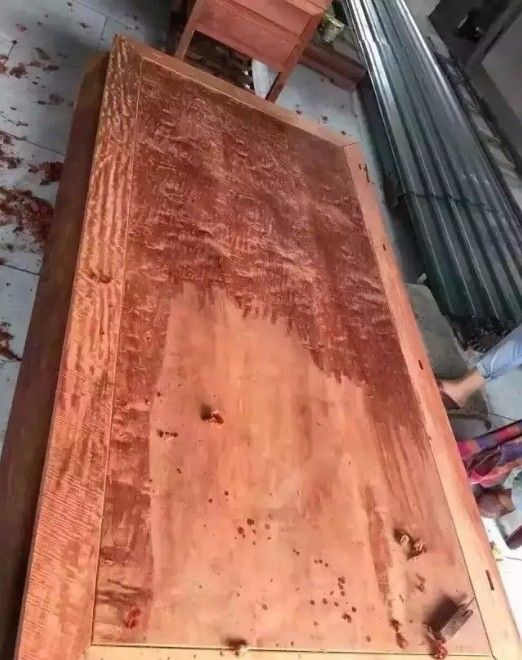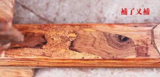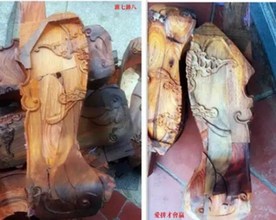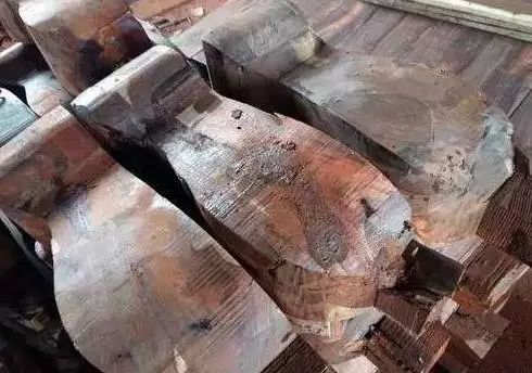用水泥把空心灌满,划上几道砍伐时的"锯痕",涂上底色。不仅让木头的品级上升到实心料,还顺带着把水泥也卖出了大红酸枝的价格。