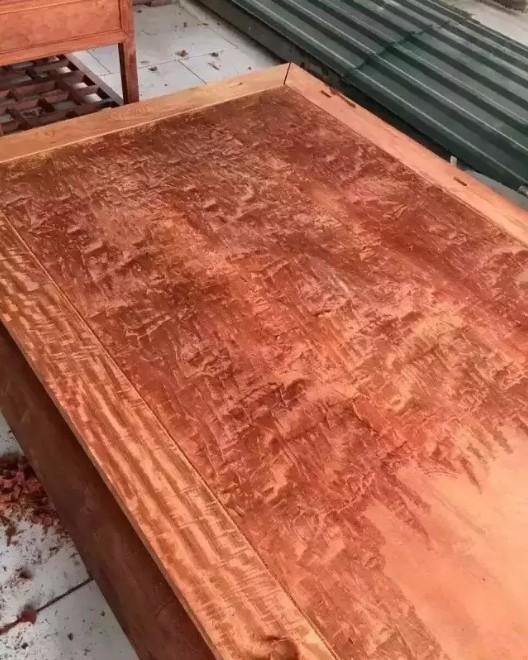 近日,还有一位木友曝光了内地某红木家具厂的满水波纹半成品家具用刮刀刮了以后的效果: