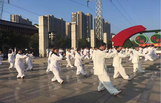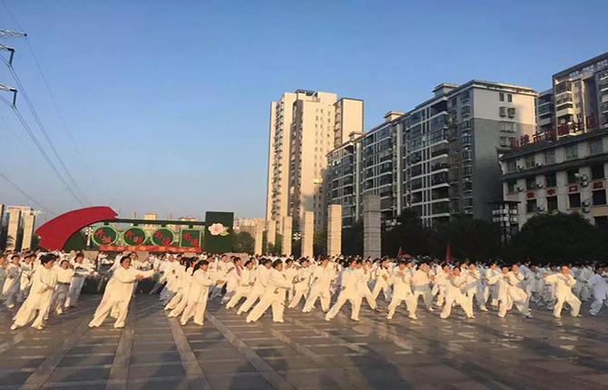 10月18日,由市太极拳协会主办、湖北扁医健康生物科技有限公司协办的“全民健身 喜迎军运”百人太极拳展演活动在沔阳公园广场举行。来自我市近500位太极拳爱好者聚集在一起,互相交流,切磋技艺。