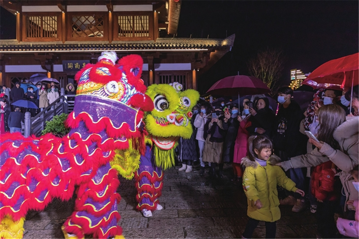 “过去过年只能逛逛公园,这里设施齐全,表演也好看,年味很浓。”家住小南小区的胡明炎从网上了解到,沔阳小镇元宵节会举办活动,便邀上好友,带着孙子一同前来。各色活动让胡明炎看花了眼,舞狮节目看了几遍都不愿走,没办法的小孙子只能拉着奶奶逛,胡明炎一边看节目,一边笑着说:“今年是我本命年,刚好60岁,半票,我得看个够才行。”