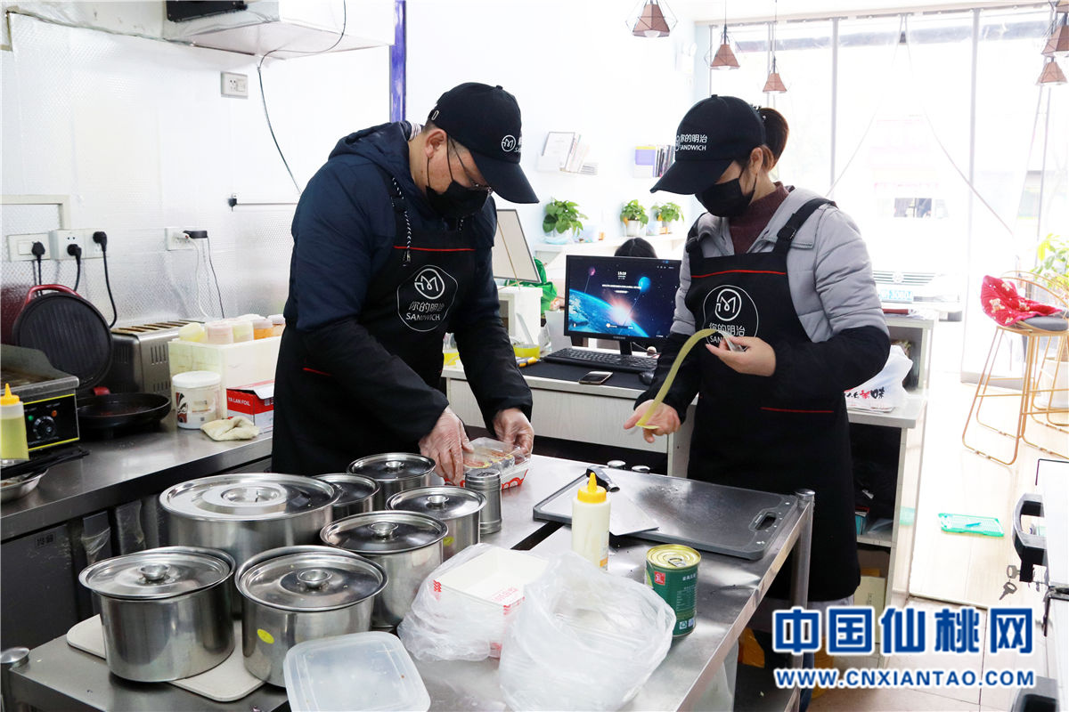 “外卖小哥,麻烦你坐着等一分钟,三明治切开打包就可以给你了。这瓶饮料你拿着喝,辛苦你们了。”3月2日早上8点40分,位于仙桃中学北门的一家店名为“你的明治”三明治店铺内,身穿工作服的老板娘毛淑娟拿着一瓶可乐递给前来取餐的外卖员。亲切的笑容、温柔的言语,让进店的外卖员和顾客都感受到一种温暖,这也得益于几年的银行工作锻炼出的业务素质。几个月以前,毛淑娟还是一名在银行窗口服务的工作人员。
