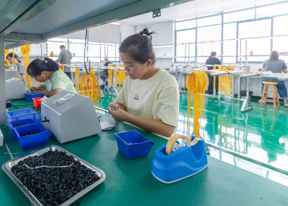 位于胡场镇的仕仕全通信有限公司,专业生产通信室内外光缆、光纤连接器、光纤接头盒等,目前新上光缆生产线4条、光纤着色机1条,不断增强市场竞争力,产品全部出口欧美和东南亚市场。图为工作人员正在检测光纤线头。摄影记者郑恒