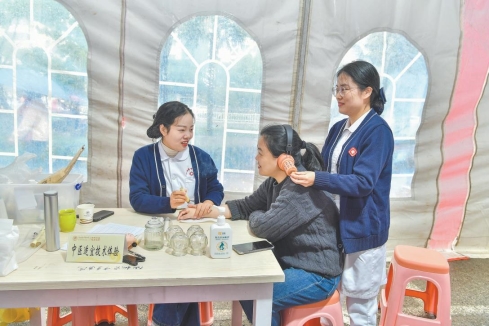 图为市民体验感受中医适宜技术服务。
