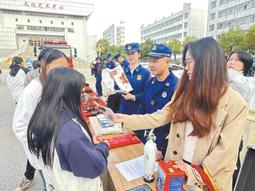互动问答环节气氛热烈,主持人抛出的消防安全知识点引发学生们踊跃抢答,答对者收获的定制小礼品更点燃参与热情。“不仅深刻体会到消防安全的重要性,还亲手掌握了防火、灭火和自救技巧,安全感和防范意识都大大提升!”仙桃职业学院学生管淳霖分享道。(记者 鹿丹丹)