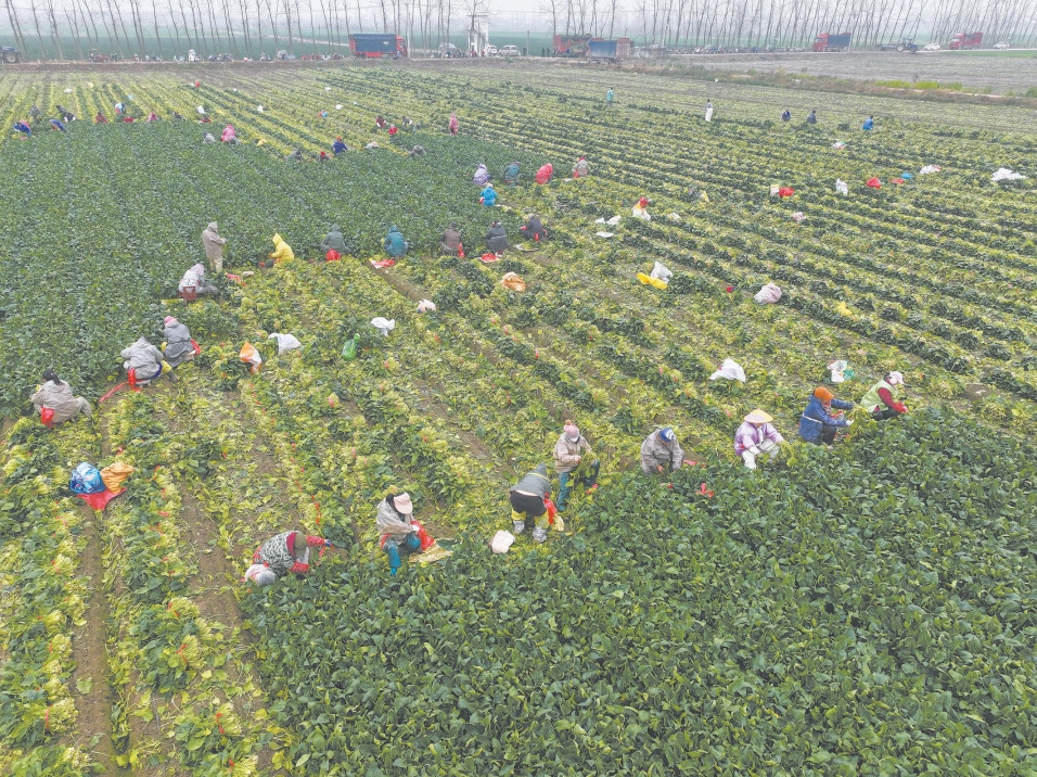 图为村民们采摘菠菜。
