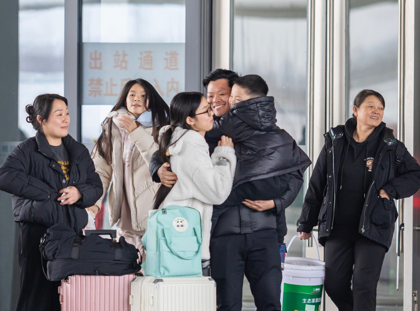 春运开始,我市迎来返乡客流高峰,出站口外,不少市民翘首以盼,迎接团圆的喜悦。图为2月4日,仙桃城铁站,旅客出站时的温馨场景。摄影 记者郑恒