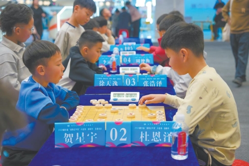 图为2月21日在武商举行的“体育过大年”分会场围棋、象棋少年棋王赛活动现场,比赛正在紧张进行中。