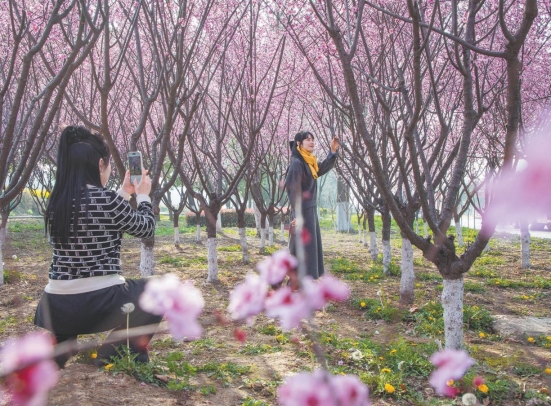 万物随春醒,“梅”好皆可期。眼下,沔州大道与永康路交汇口南侧的梅花已悄然绽放,粉红娇艳的花朵在微风中轻轻摇曳,散发出淡淡的幽香,勾勒出一幅灵动雅致的春日画卷,吸引了周边众多市民前来打卡拍照,沉浸式感受春日限定美好。摄影记者邓娟
