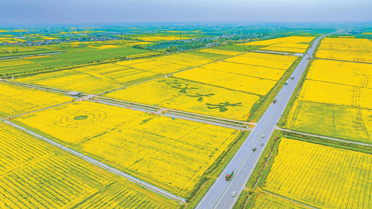 近年来,我市以花为媒,打造“春日经济”新业态,高标准农田变身网红打卡地,带动乡村旅游与产业发展。图为3月25日,航拍视角下的三伏潭镇三湾村油菜花海。摄影记者郑恒