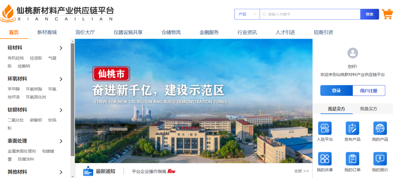 “仙材链”集新材商城、询价大厅、仪器设施共享、仓储物流、金融服务、行业咨询、人才引进、招商引资等功能于一体,立足于仙桃市新材料产业的优势和特点,通过打造全方位、全链条的供应链对接服务体系,以做强仙桃市新材料产业品牌、做大龙头领航企业、培育壮大中小企业、促进交易本地化为总体目标。
