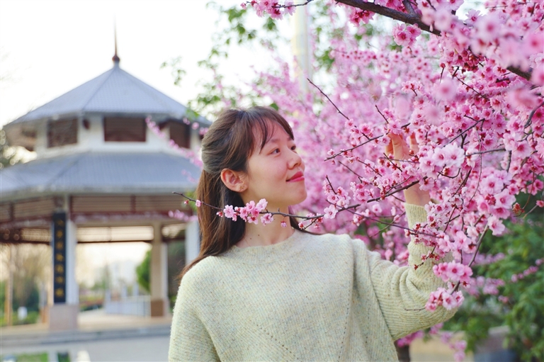 春暖花开阳光好,游园踏春正当时。在沔阳公园内,满园花儿争相盛开,市民们趁着大好天气,或在步道上闲庭信步,或驻足欣赏园内美丽风景。图为市民赏春拍照留念。(摄影记者 鹿丹丹)