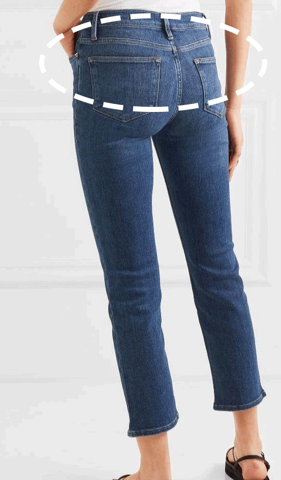 口袋尽量跟上方缝线平行,拒绝口袋下垂的裤子,这样的屁股看起来心情不好,扁平屁股的妹子要牢牢掌握。