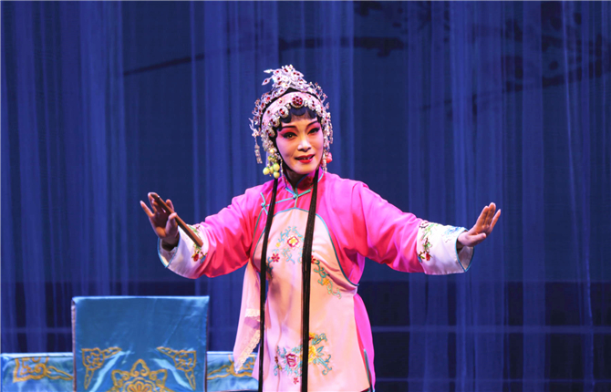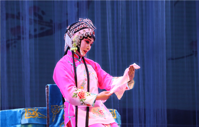 图为国家一级演员、仙桃市花鼓剧团常务副团长程琼正在表演花鼓戏《十枝梅·思儿》